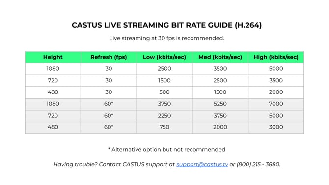 Finding the right bit rate is essential for both video files as well as live streaming video. Too low of a bit rate for live streaming can cause poor video quality, while too high of a bit rate can cause excessive buffering. Both hinder your customer’s viewing experience, so finding the right bit rate is essential.