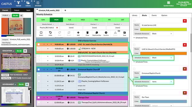 The schedule announce dropdown allows you to customize how your block is presented to your customers on your Video on Demand website. This does not currently apply to the Coming Up Next feature on-screen within CASTUS.