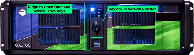 - Position yourself in front of the CASTUS unit so you can see the front decals, keylock, and left and right doors.