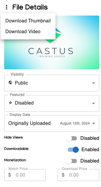 - Select the three dot menu to the left of File Details to download your thumbnail or video file.