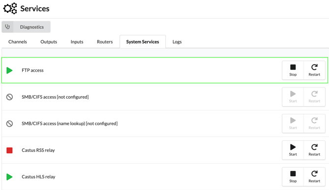 If you plan to transfer files in bulk to your CASTUS, it's essential to ensure that the FTP service is enabled on your device.