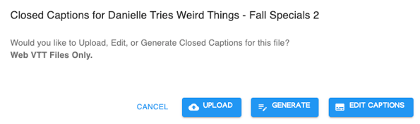 - File-based captions can be uploaded to your playback server and will play out with your file if it is in the same directory and named the same as your video file.