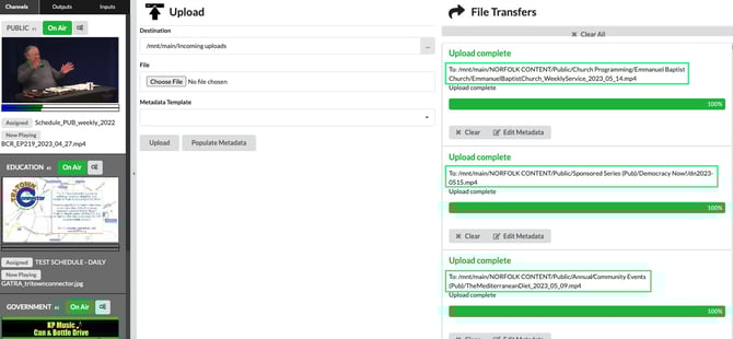 Upload & File Transfer Screen - When you upload, move, or send a file to VOD, the file path is clearly displayed and can be easily clicked for quick access to the file in your library.