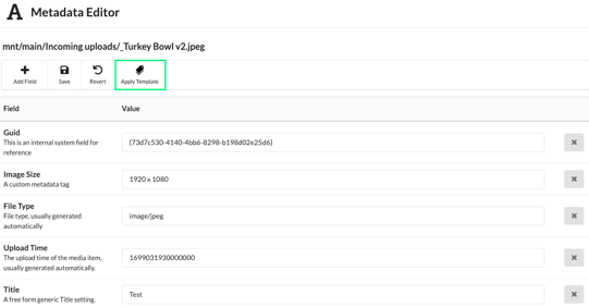 Metadata templates can be applied in two ways: during the upload process or within the edit metadata window for a file already stored in your library.