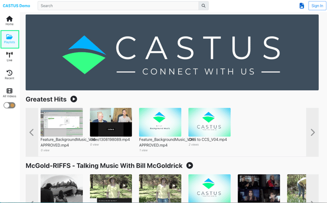 - Log in to cloud.castus.tv/admin and choose On Demand > Playlists.