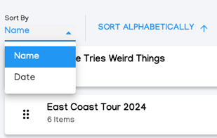 - Alphabetically or by Date: Select the Sort By dropdown menu and choose either Name or Date to determine how you want to arrange your playlists. Next, click the button on the right to sort the items in either ascending or descending order.