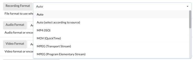 - Select the dropdown menu next to Recording Format and choose your desired format.