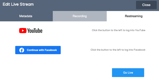 - Click Go Live when you’re ready and watch the cloud portal seamlessly stream to your platform(s).