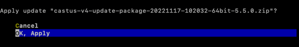 Download the update file and upload to your physical server via the User Interface (UI). Execute the update-ui command in the terminal on your CASTUS unit to initiate the update interface and proceed with the update process.