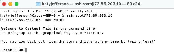 - Type in “ssh root@” directly followed by your unit’s IP address.