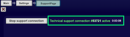 START TECH SUPPORT VIA USER INTERFACE (VERSION 5.4.0 OR LATER)