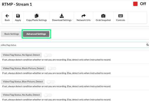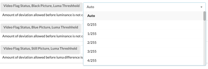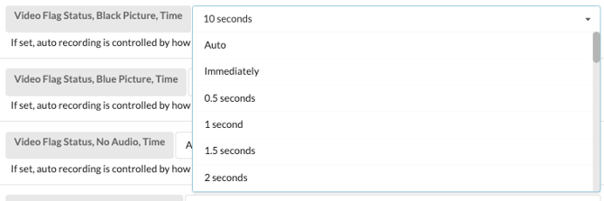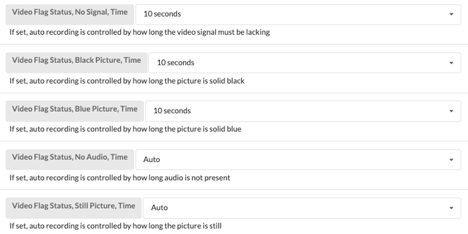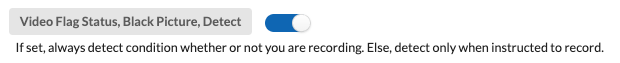 - Choose the video flag status, detect, that best suits your operational needs (no signal, black picture, blue picture, no audio, or still picture) and turn the radio button on.