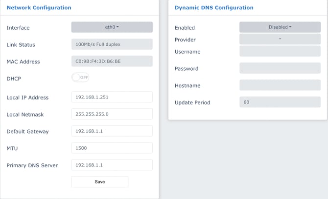 - Change the Local IP Address as well as the Local Netmask and Default Gateway if needed.